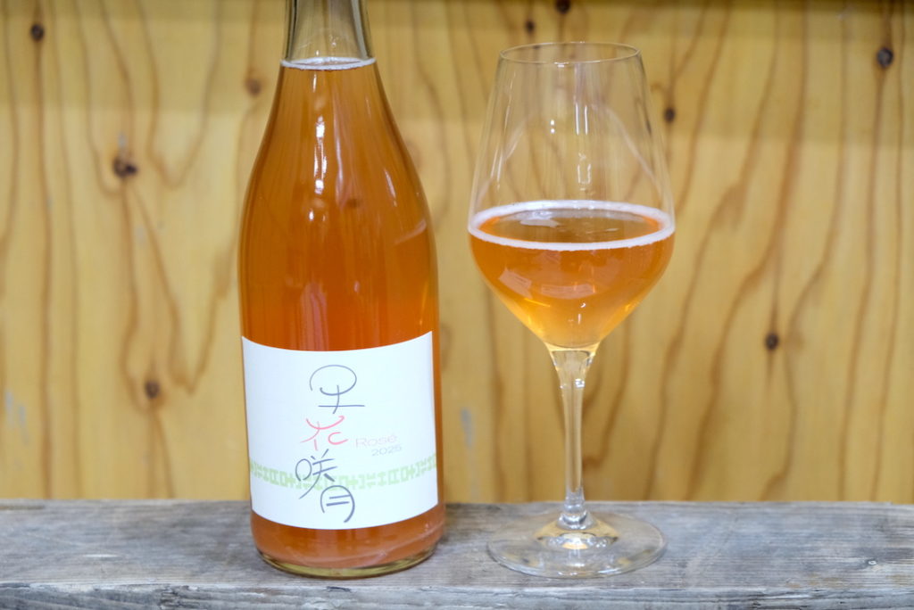 12月10日試飲:ピンクとオレンジの中程の色合い。まだ甘さがありますが、微発泡感とよく相まって果実感を支えています。味わいの始めはケルナー感が強め。後半にピノの赤い可愛らしさのあるキイチゴ感がフォロー。若めの梨や甘みのある白桃のニュアンスも感じられます。